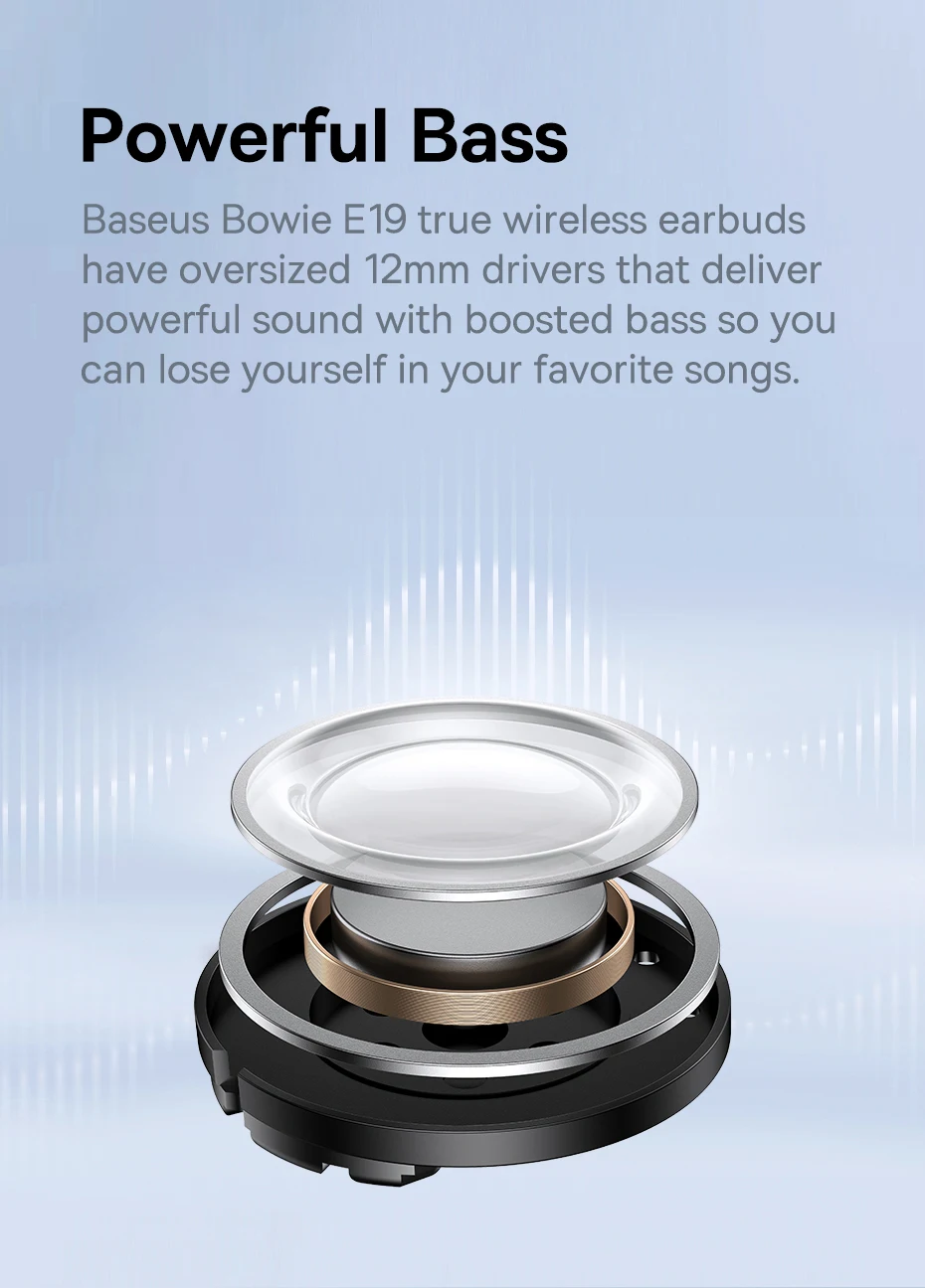 Baseus Bowie E19 true wireless earbuds have oversized 12mm drivers that deliver