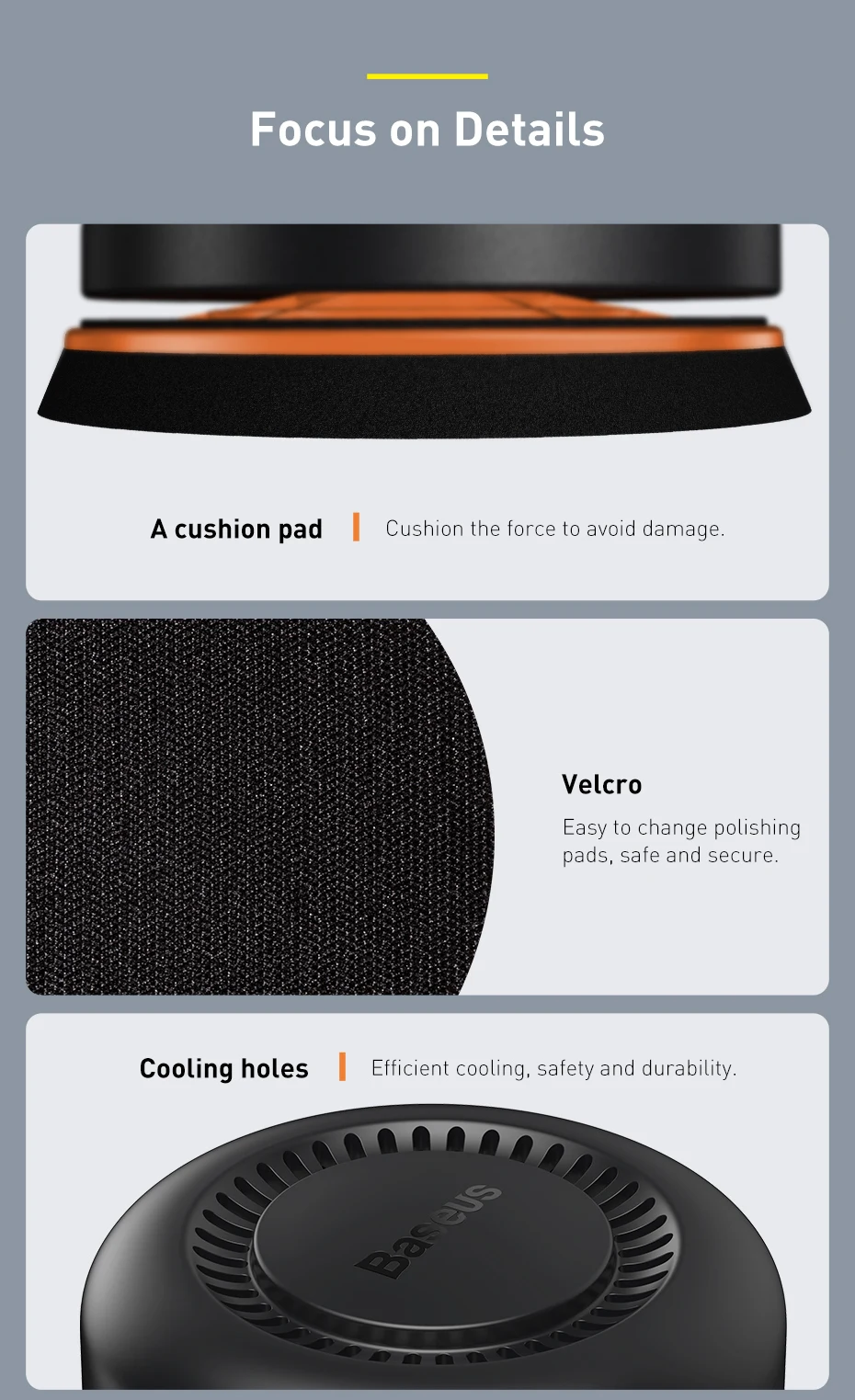 Equipped with a high-performance motor, the Baseus polisher delivers consistent power and smooth operation, ensuring a professional-quality finish every time.