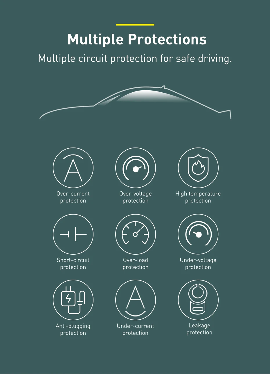 The Baseus FM Transmitter is equipped with dual USB ports, allowing simultaneous charging of two devices. One port supports fast charging, making it ideal for modern smartphones, tablets, and other gadgets.