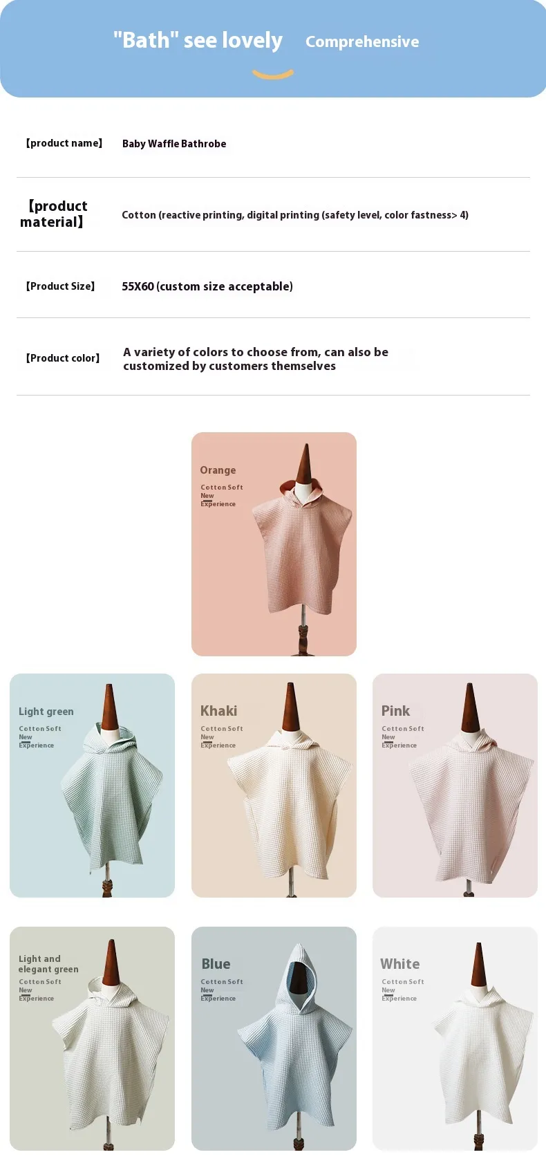 Size: white, pea green, pink, green, beige, salmon, sky blue