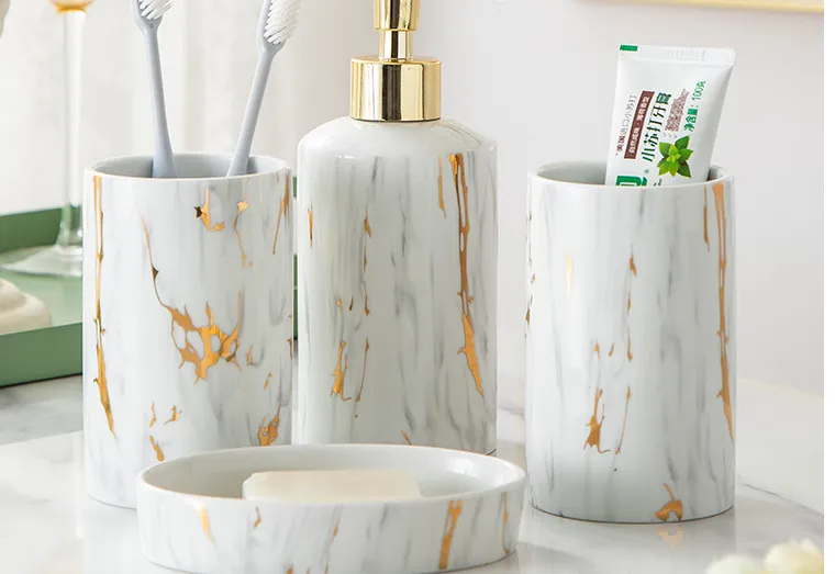 With its timeless marble design, this ceramic wash kit is not only functional but also a stylish accessory for your bathroom. Whether you're revamping your bathroom décor or adding a touch of luxury, the Bathroom Marble Wash Kit is the perfect combination of form and function.