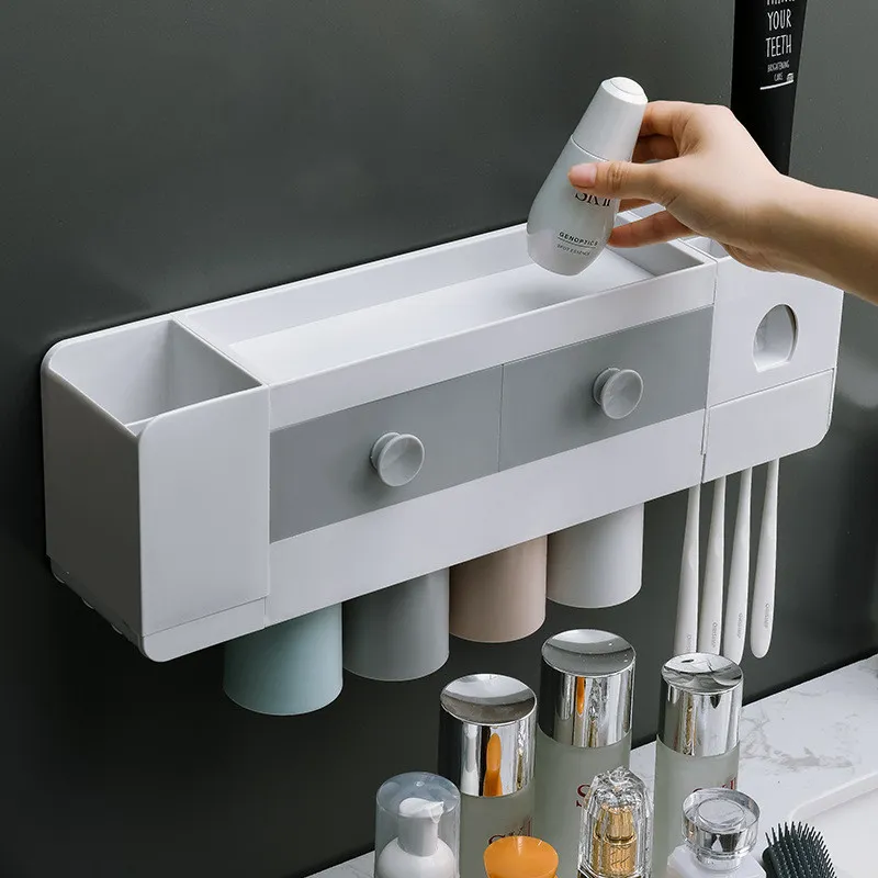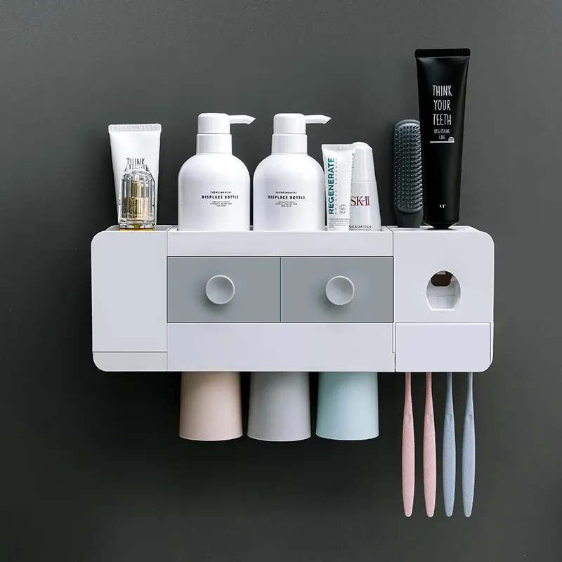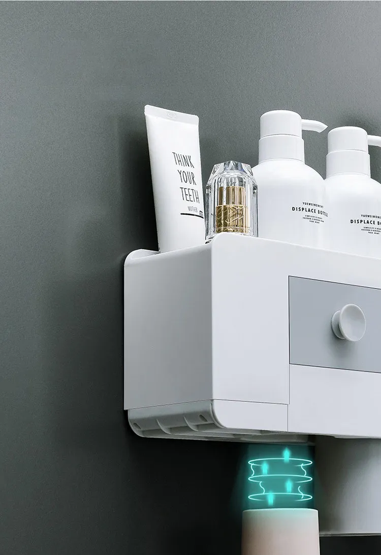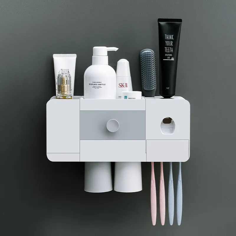 bathroom toothbrush rack, magnetic toothbrush holder, automatic toothpaste extrusion, toothpaste dispenser, wall-mounted toothbrush holder,