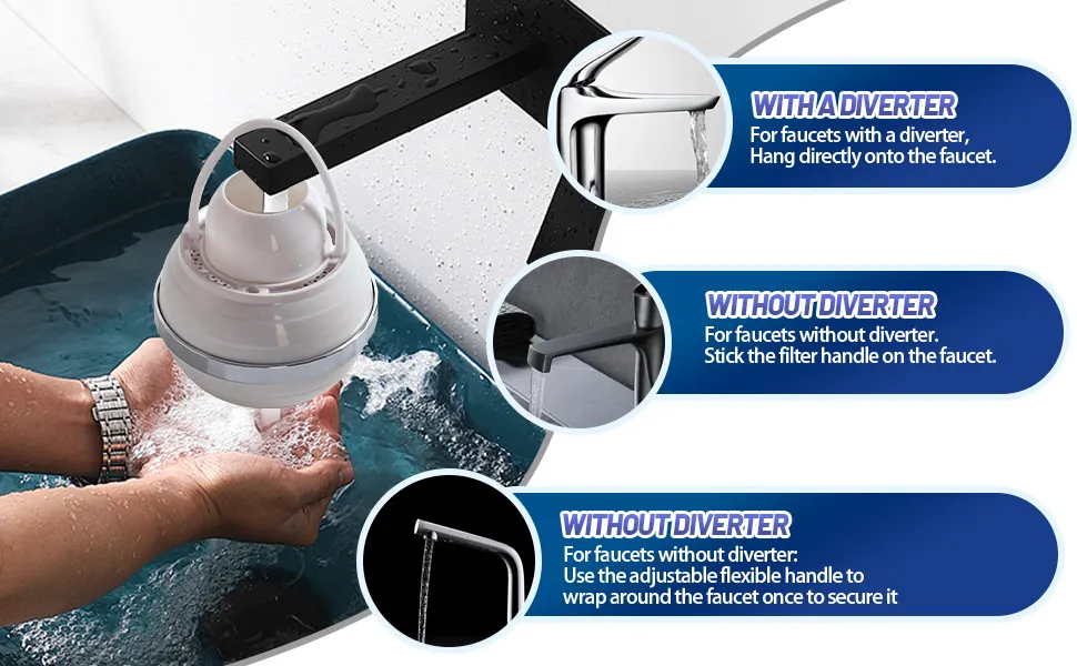 - No Tools Needed: The installation-free, hanging design makes it quick and simple to attach the filter to any showerhead. There's no need for complicated plumbing or tools—just hang it up and enjoy purified water.