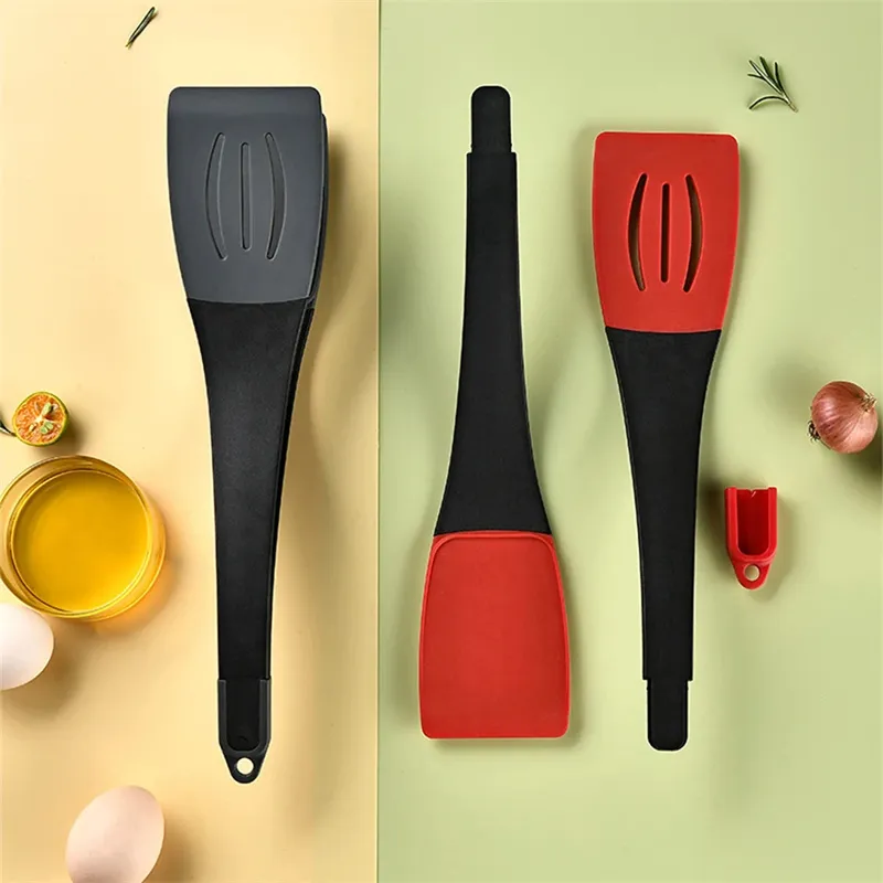 The detachable scraper clip includes one slotted shovel and one rotary blade, which is divided into two parts and is a true 3-in-1. One set of products has three functions. A detachable scraper is used for cooking. The ergonomic handle, comfortable grip, and curved design make cooking and flipping food easier.
