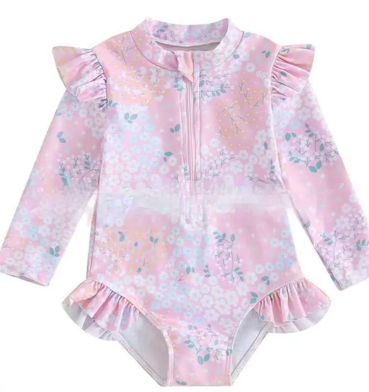 Beach Long Sleeve Sunscreen Baby Girl Surfing Suit Swimsuit – Protective, Comfortable, and Stylish Swimwear for Little Ones