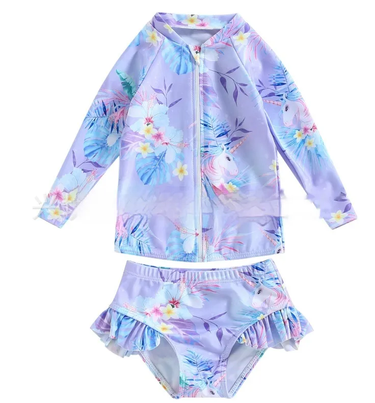 The Beach Long Sleeve Sunscreen Baby Girl Surfing Suit Swimsuit is the ultimate swimwear for young girls who love to have fun in the sun and
