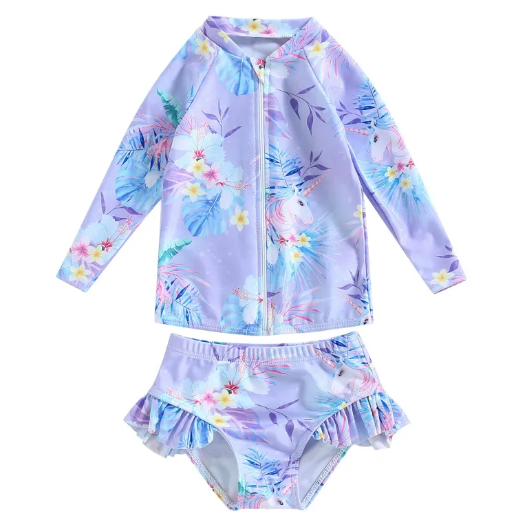 water. With its UV protection, long sleeve design, and flexible fit, this swimsuit ensures that your little one stays safe from the sun
