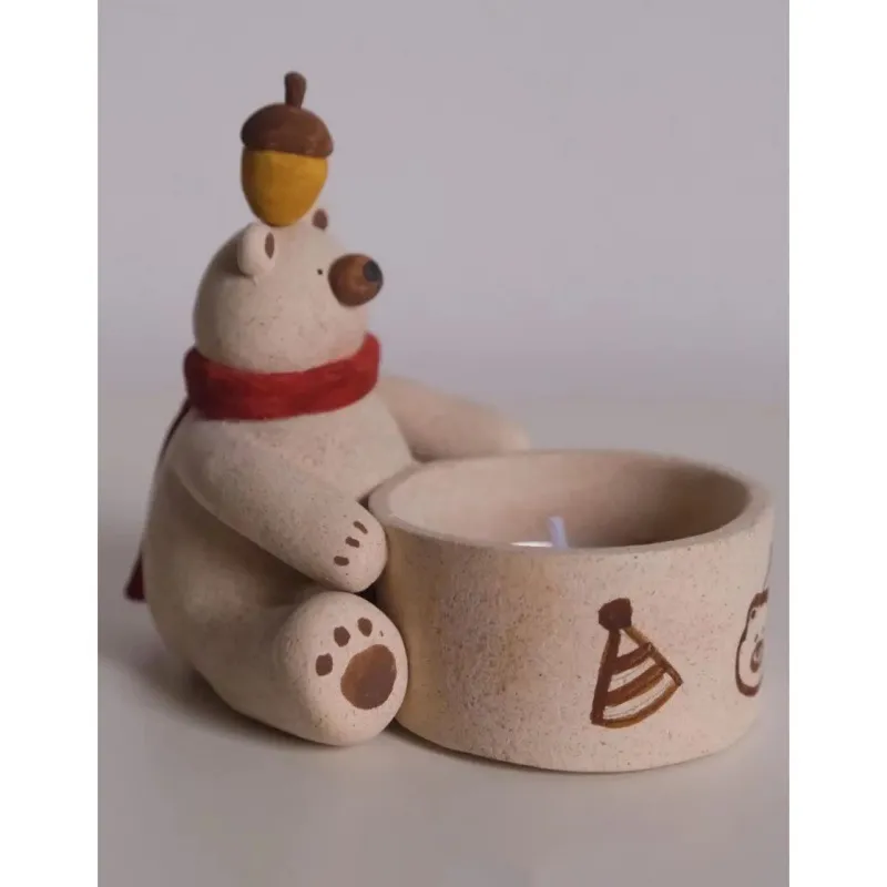 Bear Chestnut Head Fire Candlestick Resin Craft Ornament