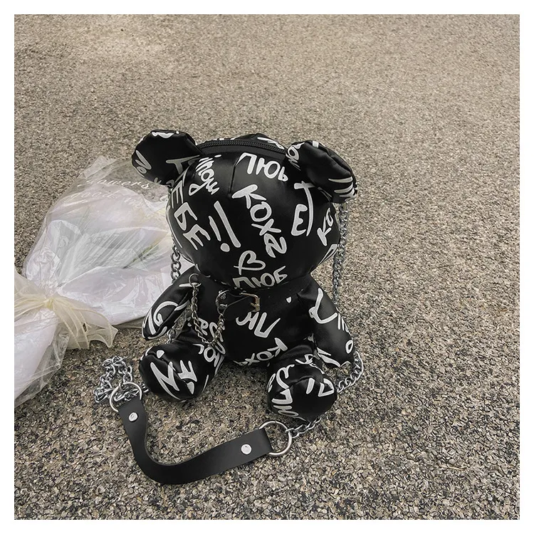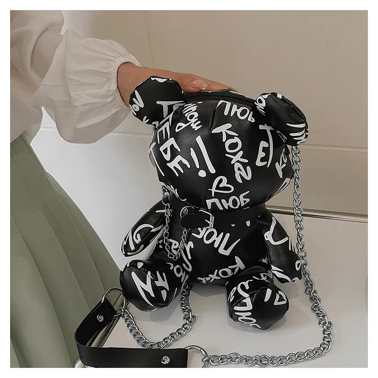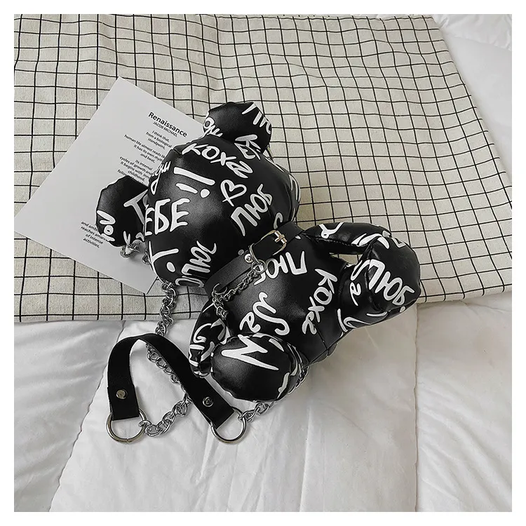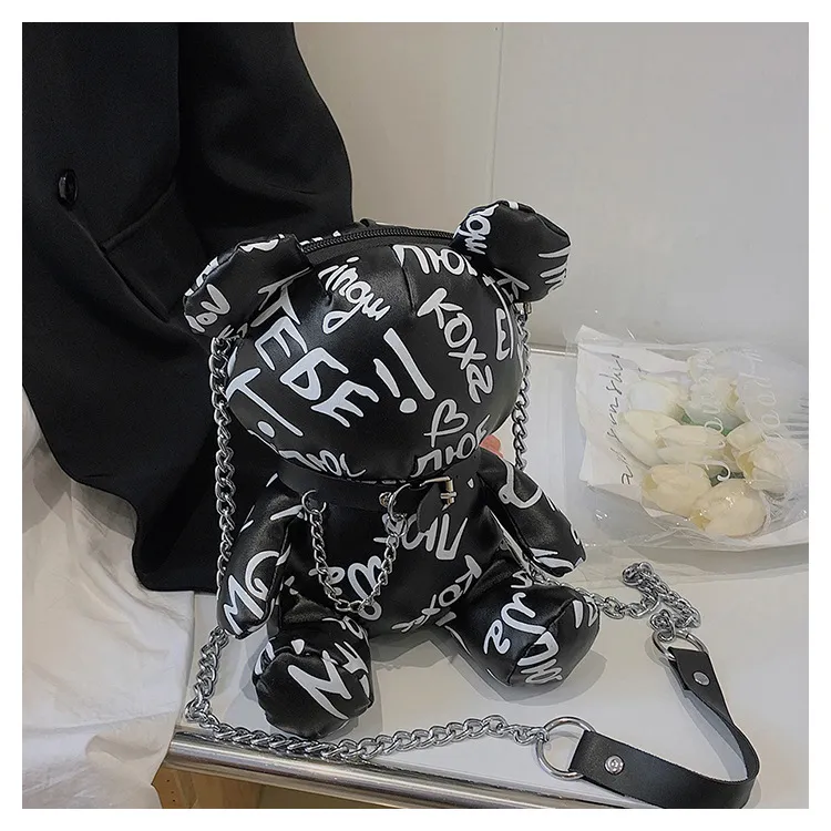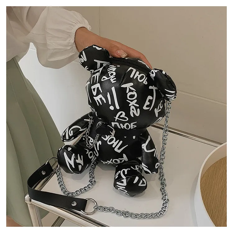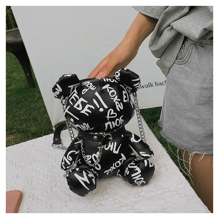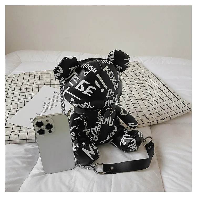 Bear Graffiti Bucket Bag Portable Shoulder Messenger Bag For Women