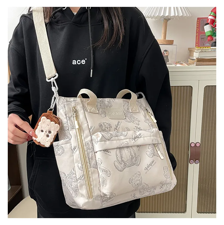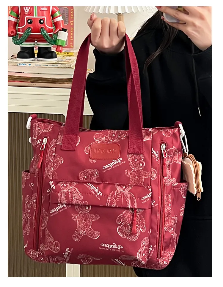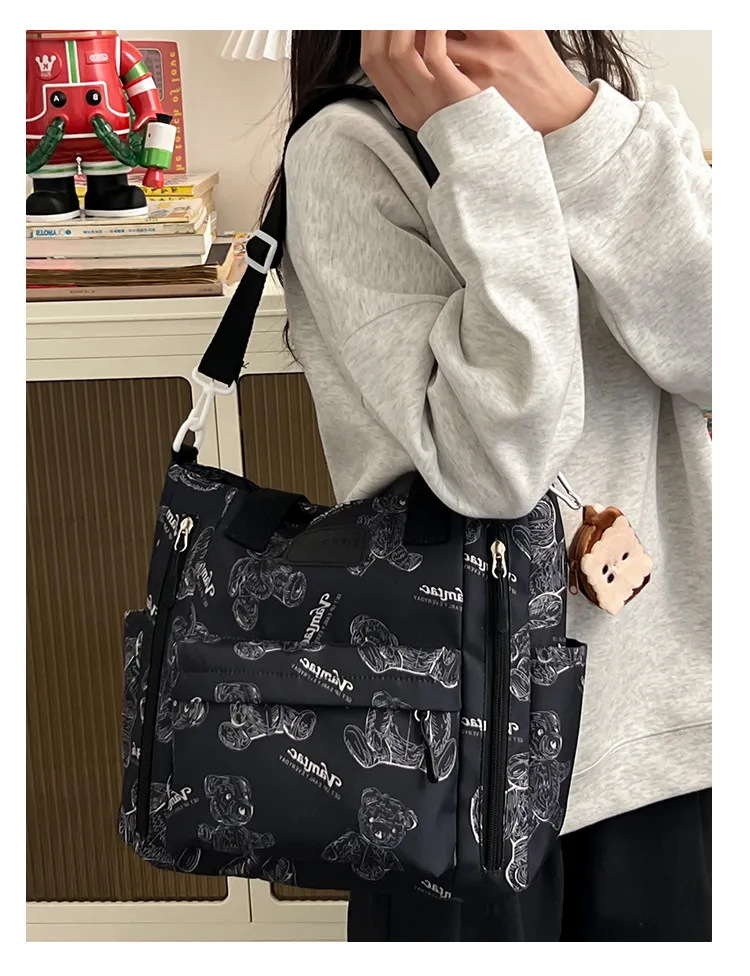 Bear Print Large Capacity Multi-Pocket Tote Bag Shoulder Bag Crossbody Lightweight For Going Out Handbag