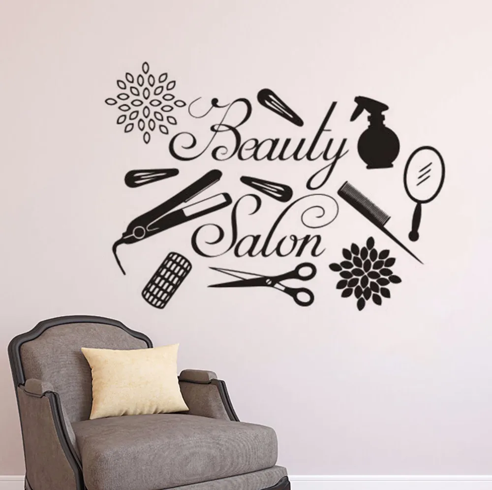 Foreign trade hot sale creative beauty salon tools pattern home decoration barber shop window wall decal DW1408
