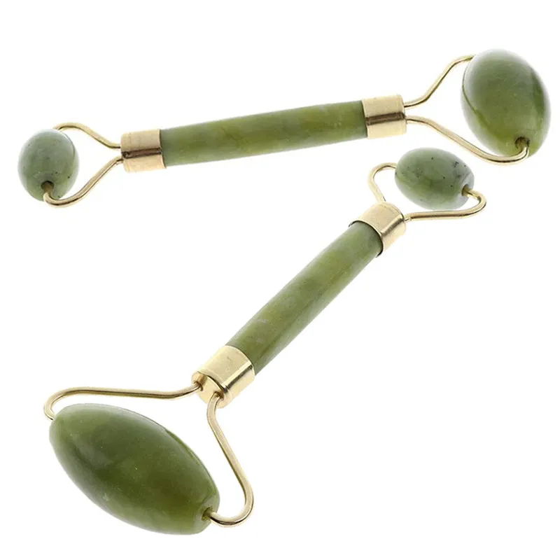 The dual-ended jade roller features two different-sized rollers, allowing for versatile use on various parts of the face. The larger roller is perfect for broader areas such as the cheeks, forehead, and jawline, while the smaller roller is ideal for delicate areas like the under-eye region and around the nose. Regular use of the jade roller helps improve blood circulation, stimulate collagen production, and encourage lymphatic drainage, which can reduce puffiness and promote a brighter complexion.