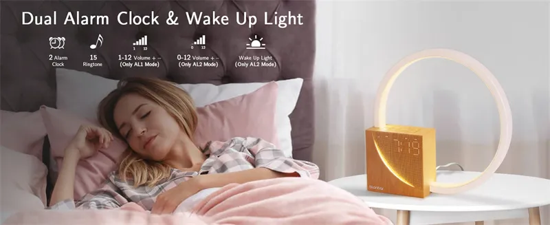 Wake-Up Alarm Clock: The wake-up light turns on 10 minutes before the set alarm time. You can also press the Snooze