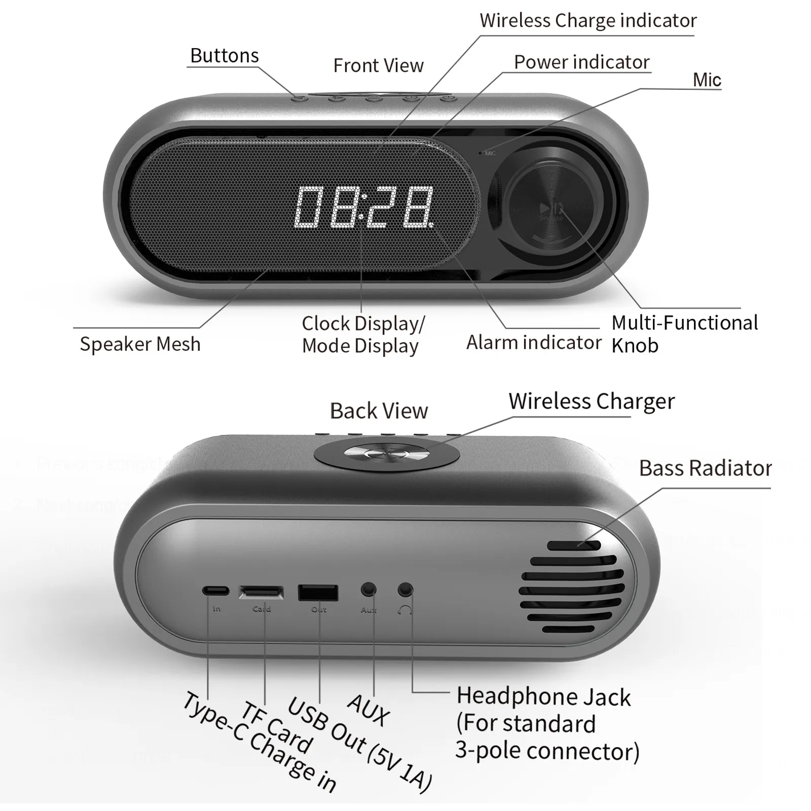 Type: bedside alarm clock speaker