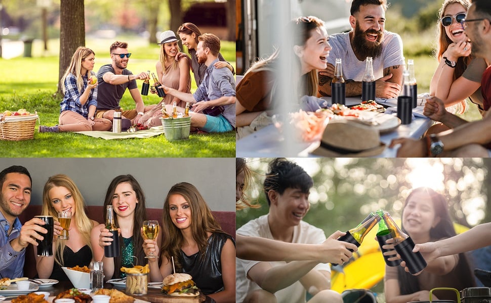 šćParty Favorite& Perfect Gift OptionsćThe beer holder can be widely used at a party, at the beach or a barbeque, or camping adventures. For those who like to drink cold drinks, this insulator can cooler can be a perfect gift.