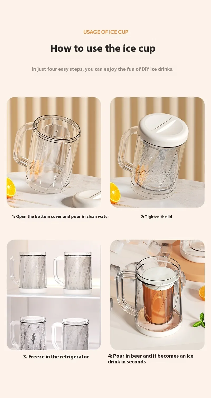 prevents your hand from warming the beer, allowing the drink to stay cooler for longer. The sturdy handle provides comfort and control when