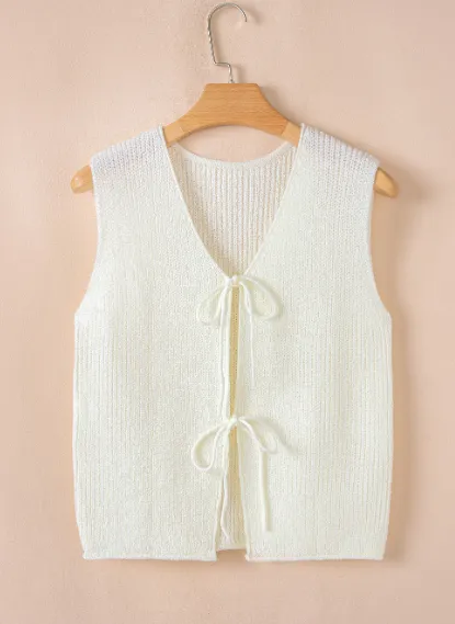 Stay stylish and comfortable with the Beige Lace-Up Front V Neck Sweater Vest, a versatile addition to your wardrobe that combines casual charm with a modern twist. Crafted from soft, breathable knit fabric, this vest features a flattering V-neck and a unique lace-up front detail that adds texture and visual interest.