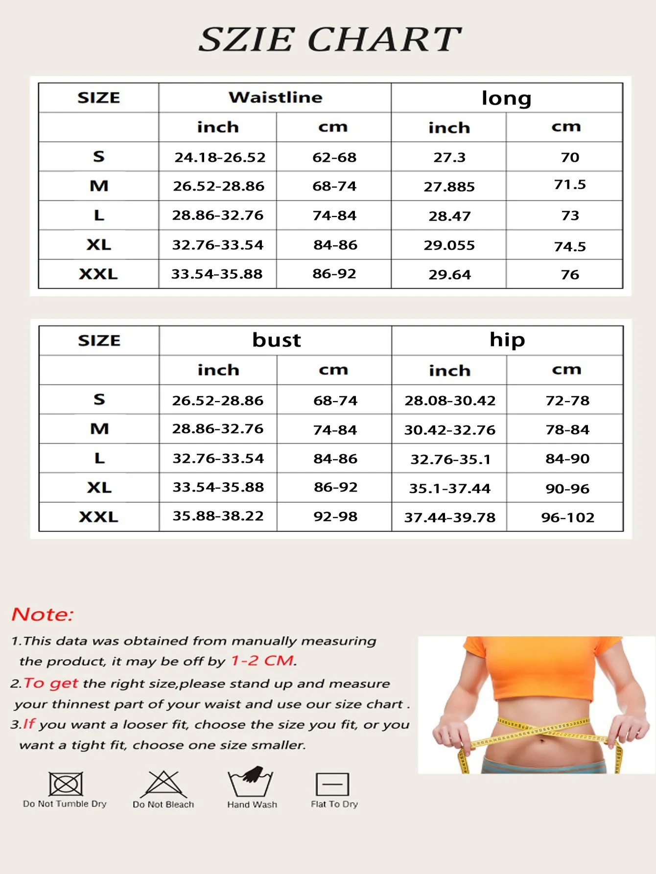 allow 2-3cm differences due to manual measurement. 2. Please check the size chart carefully before you buy the item, if you don't know how