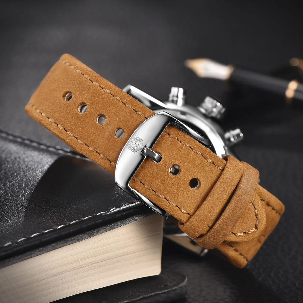 Equipped with a genuine leather strap, this watch combines durability with comfort. The leather strap is soft yet sturdy, offering a comfortable fit for everyday wear. The classic look of the leather strap enhances the watch's appeal, making it suitable for both casual and semi-formal occasions.