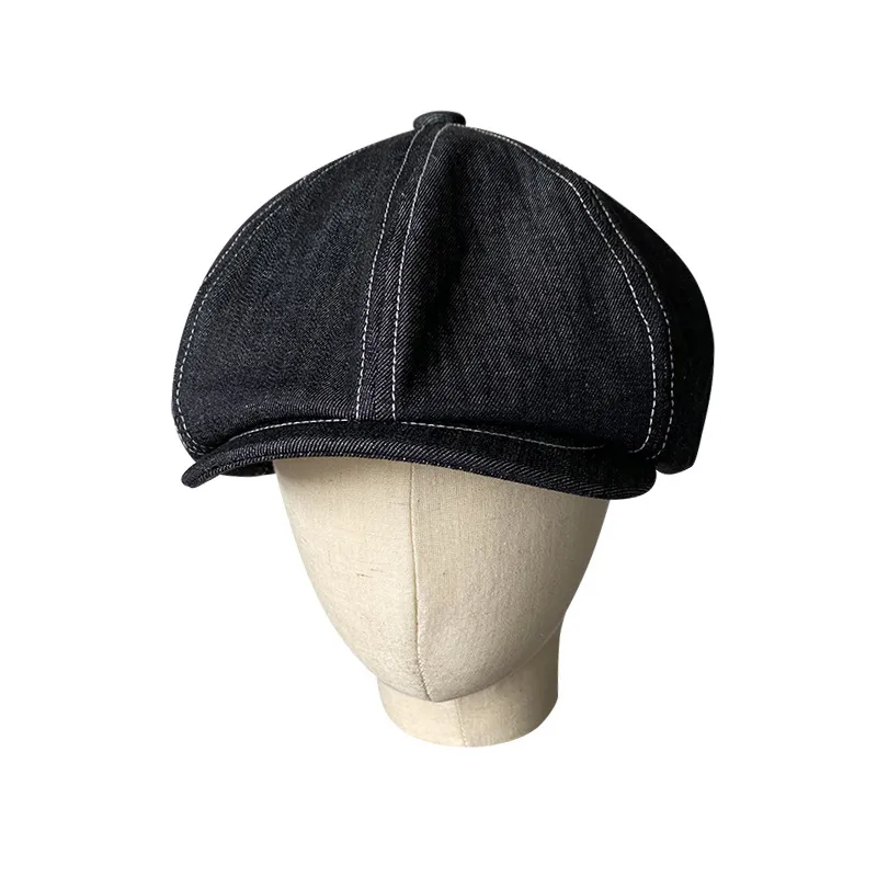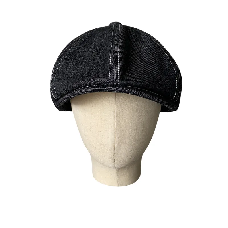 Color: octagonal cap-Japanese Denim fabric Black