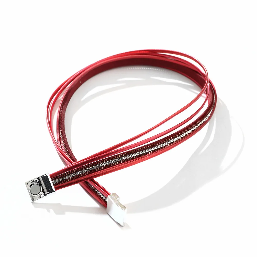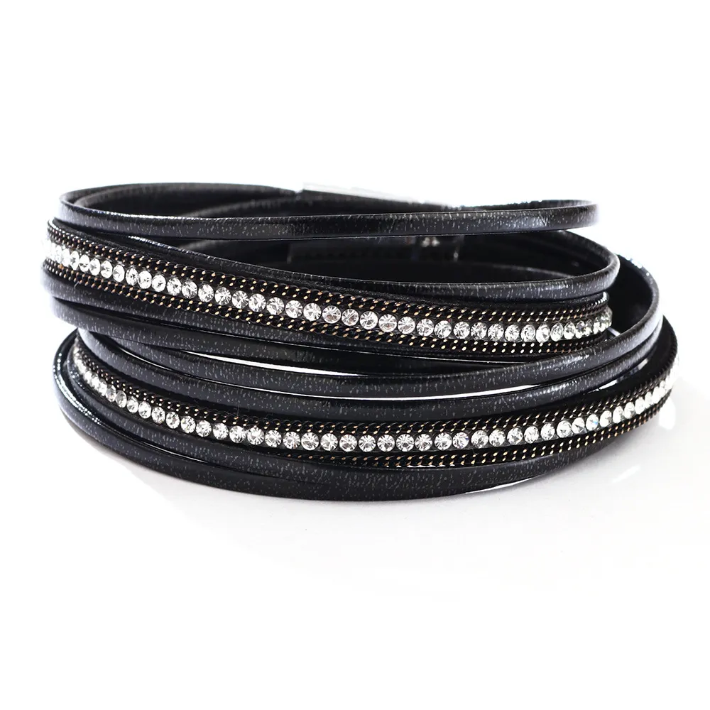 Best-selling Button In Europe And America Diamond Bracelet PU Leather Colorful Rhinestone Fashion Bracelet Foreign Trade Hot Drilling Hot Sale Hand Jewelry Wholesale