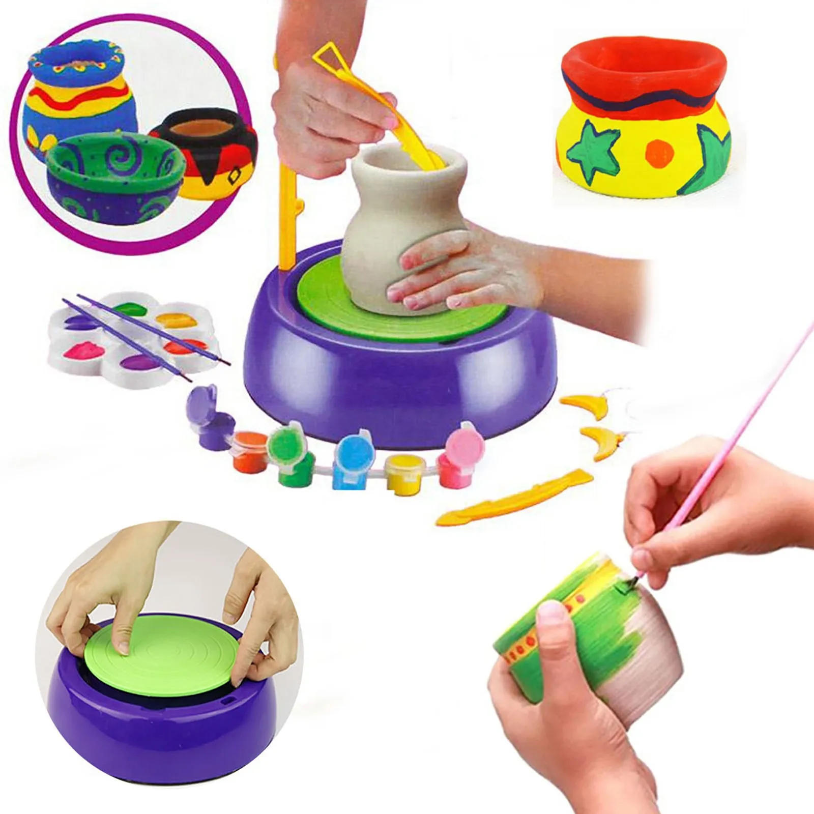 Bginners Pottery Wheel Kit Craft Toys For Kids With Paints And Tools Diy Toy Clay Pots Making Pottery Wheel Set For Kids Gifts
