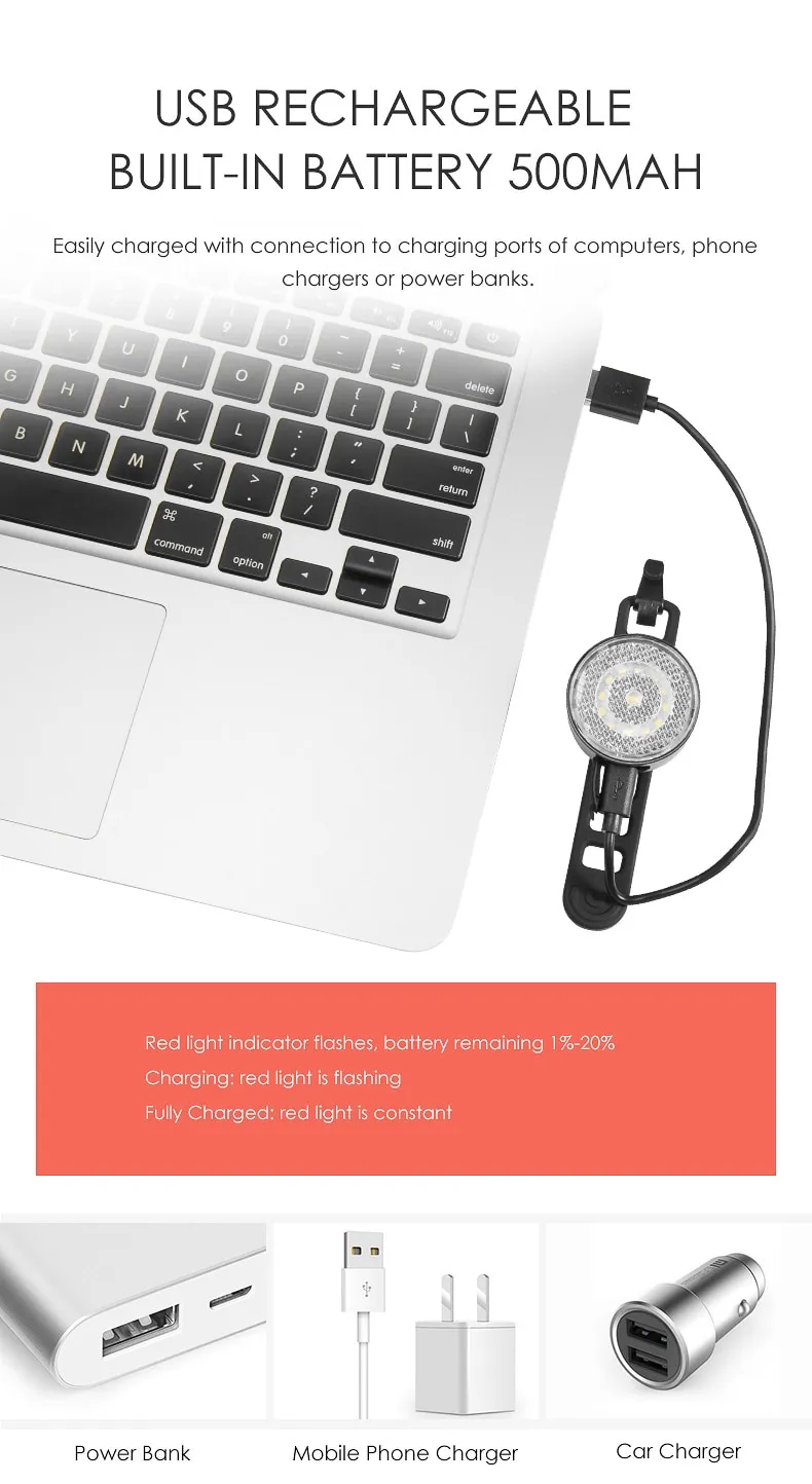 No need to worry about running out of power mid-ride! These Bicycle LED Headlights come with a rechargeable lithium battery that provides hours of continuous use on a single charge. The USB charging capability allows you to easily recharge the headlights using a power bank, laptop, or USB adapter.