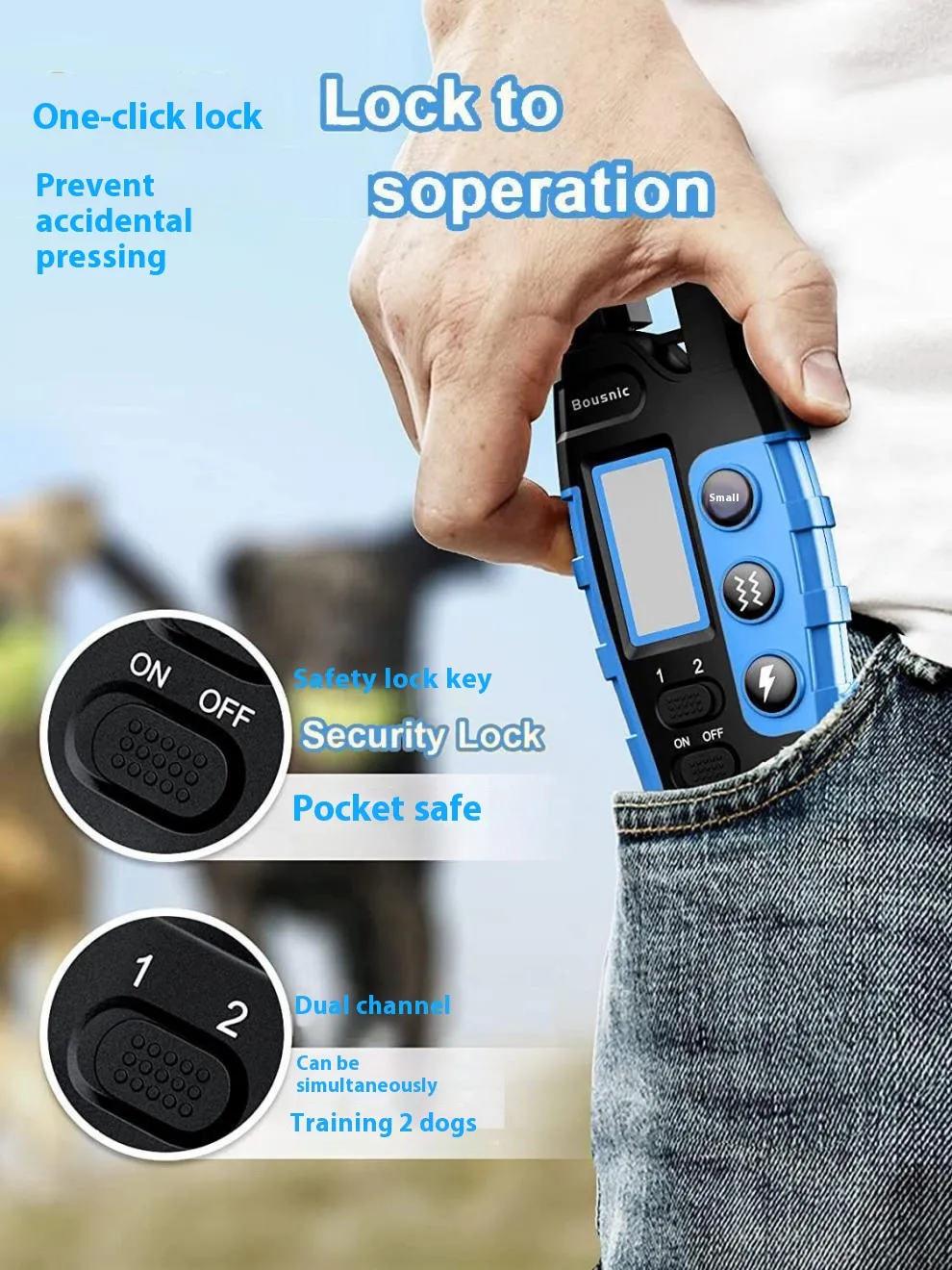 The collar features multiple intensity levels for shock, vibration, and sound, ensuring you can tailor the training experience to your dog’s temperament and response. Additionally, the collar is rechargeable, reducing the need for disposable batteries, and it's waterproof, allowing you to use it during outdoor activities or in different weather conditions.
