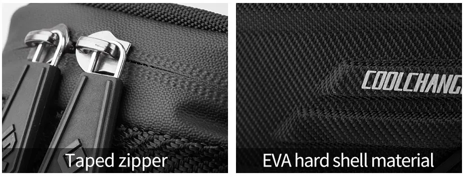 EVA hard shell material taped zipper, better waterproof performance