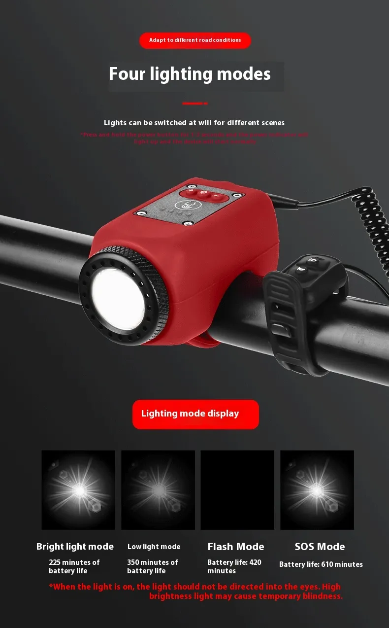 This combination of features offers cyclists a comprehensive safety solution, reducing risk and increasing confidence during rides at dawn, dusk, or night. Whether you cycle daily or periodically, the Bike Electronic Horn with Large Range Floodlight delivers improved awareness and protection that every cyclist values.