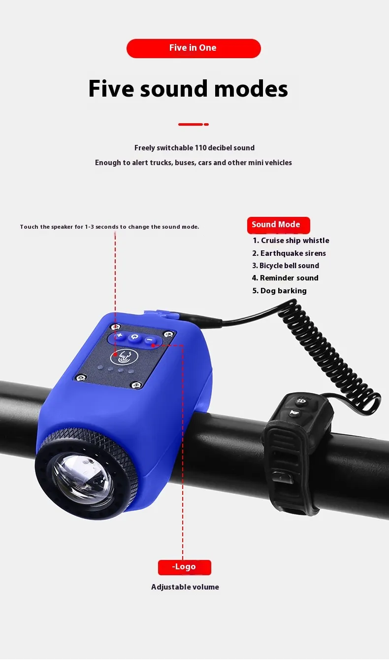 Constructed from robust materials resistant to vibration, impact, and weather, this device is suitable for all environments, from urban streets to rugged trails. Simple, tool‑free mounting makes it compatible with most handlebars, and intuitive controls ensure easy activation of the horn and light even while riding. The large‑range floodlight features multiple brightness settings so you can adjust the intensity for city roads or darker off‑road paths. Designed for reliability, the unit also includes a rechargeable battery system that provides extended usage between charges, so you can focus on your ride instead of frequent recharging.