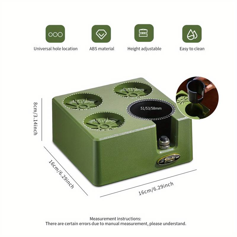 The Bincoo Universal Coffee Tool Storage Organizer is the ultimate solution for anyone looking to keep their espresso station clean and organized. Designed to accommodate 51mm, 53mm, and 58mm portafilters, this versatile organizer offers a space-saving square base with multiple compartments to store all your essential espresso tools. Made from durable ABS plastic, it’s built to withstand daily use, making it perfect for both home and commercial coffee stations.