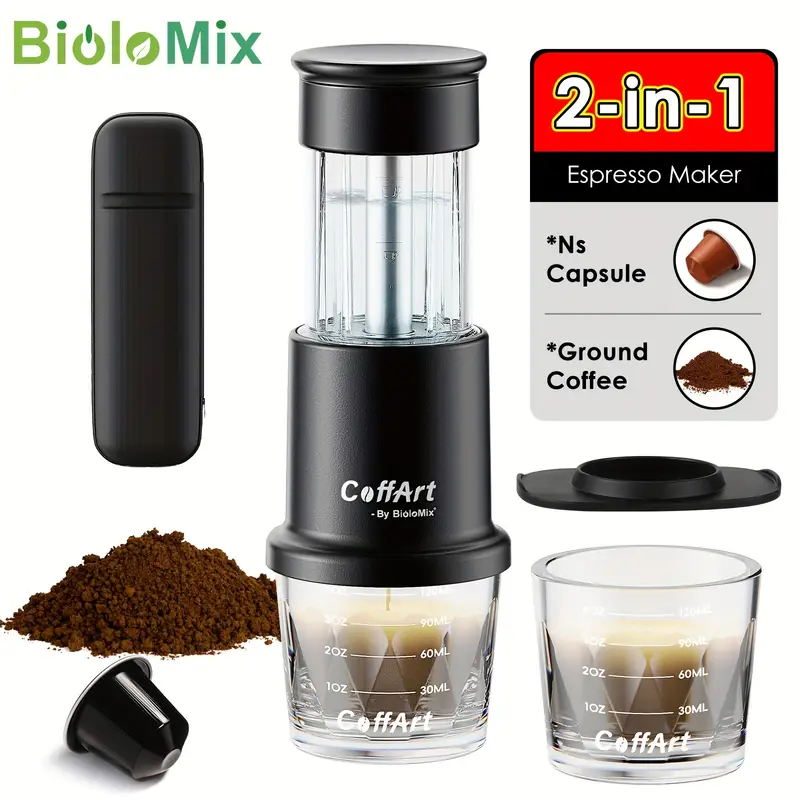 BIOLOMIX Portable Espresso Maker 2-in-1 for Coffee & Tea