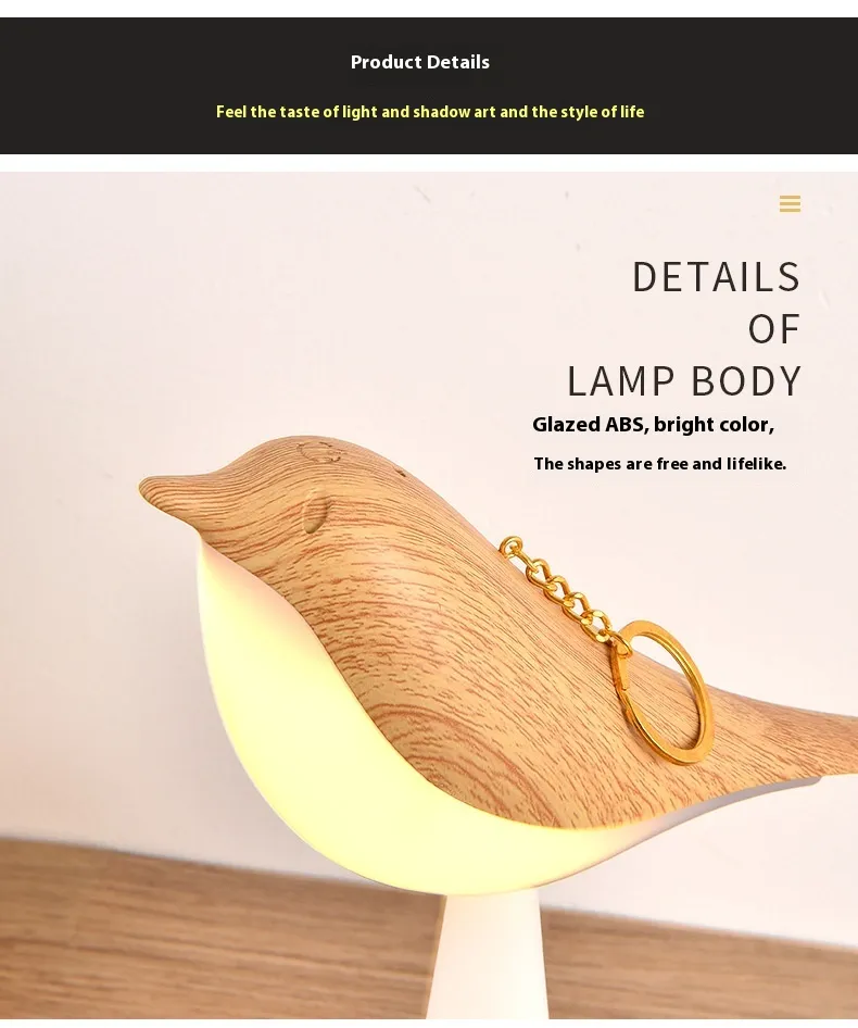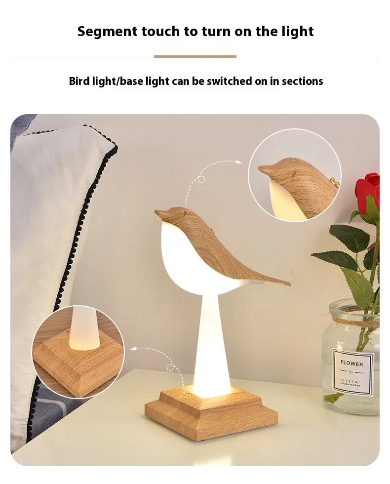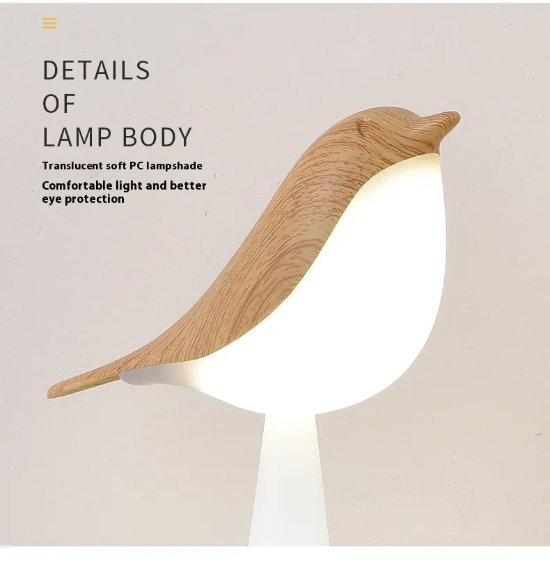 Versatile Design for Any Space: This Detachable Bird Lamp is as functional as it is charming. The bird-shaped light can be detached from its base, making it a perfect tiny lamp for small spaces or a decorative bird light lamp.Whether you use it as a bird table lamp on your desk or a cordless desk lamp in your living room, its versatility shines through. Plus, its compact size makes it ideal for small bird table lamp setups in nurseries, offices, or cozy corners.