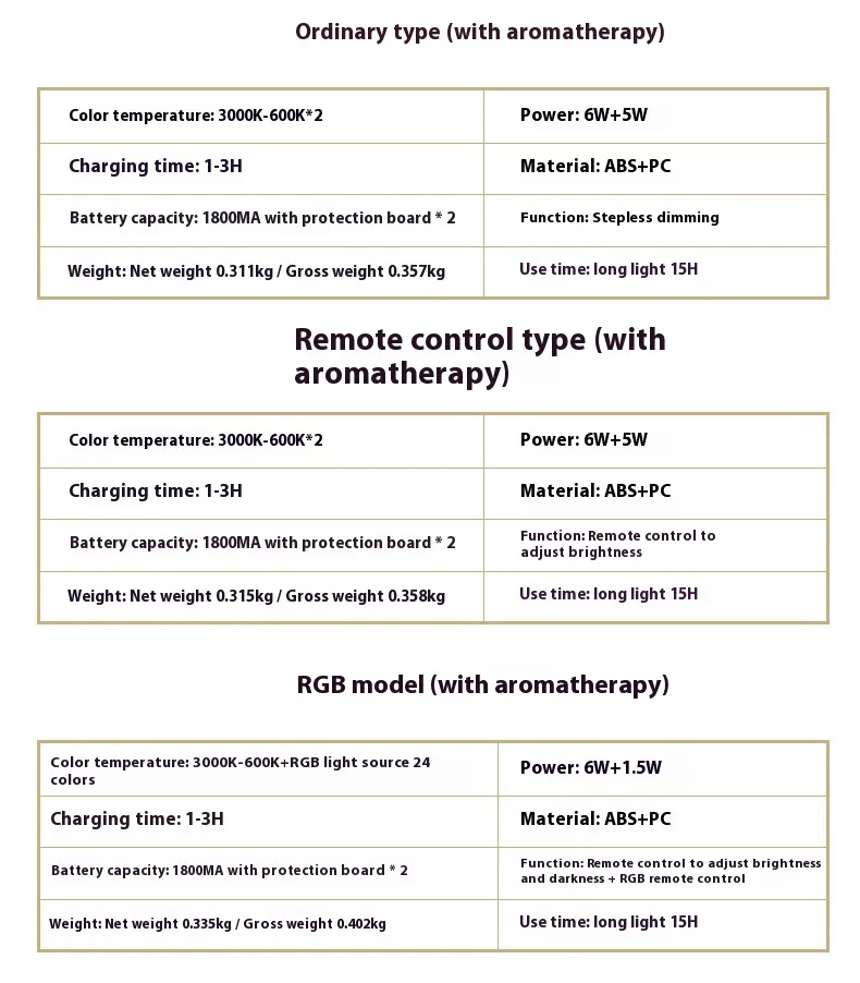 Specifications: base without light source three-color touch light changing, base with light source colorful remote control