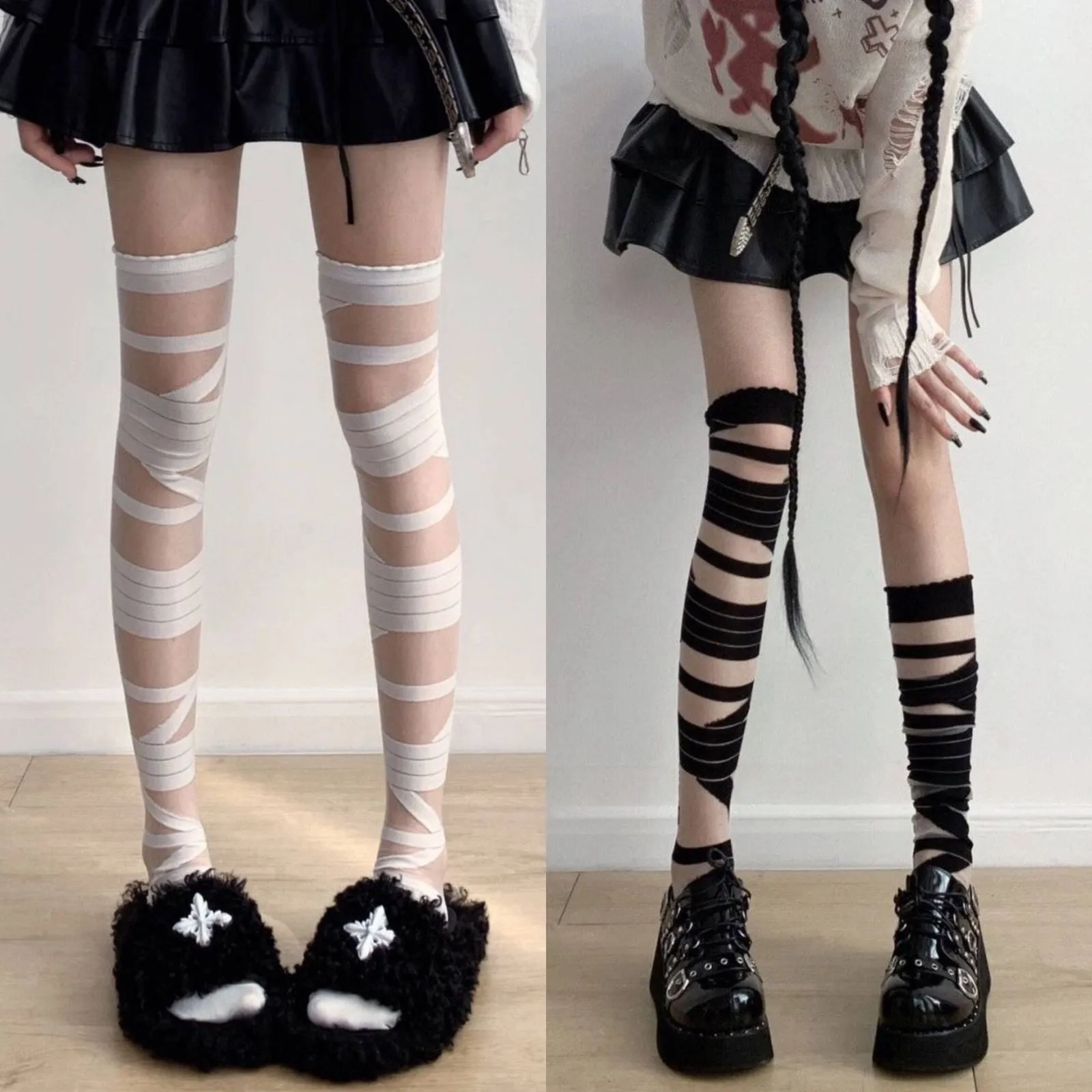 Home › Plants, Gifts, Toys & More › Gift-tree-black-and-white-bandage-long-tube-silk-jk-uniform-cross-strap-over-the-knee-stockings-stockings