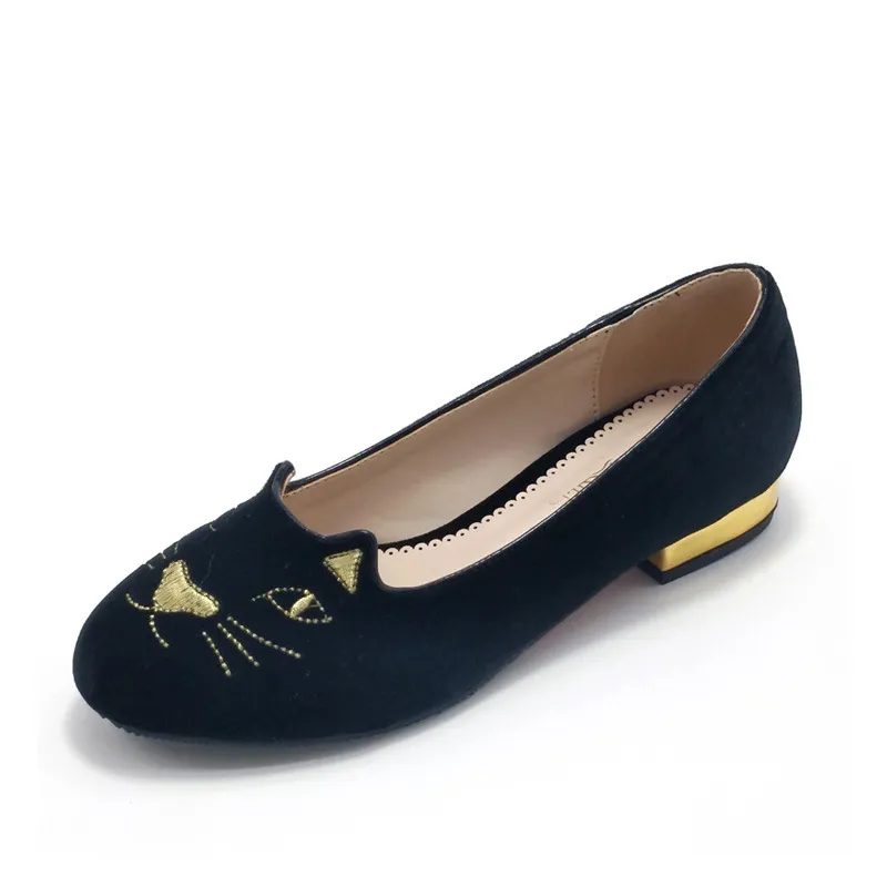 DescriptionMaterialClothProduct AttributesOrdinaryPackage Size230*300*120(mm)These super-cute black cat ballet flats are both stylish and practical. They make the purrfect partner for a whole range of outfits from the casual to the formal.