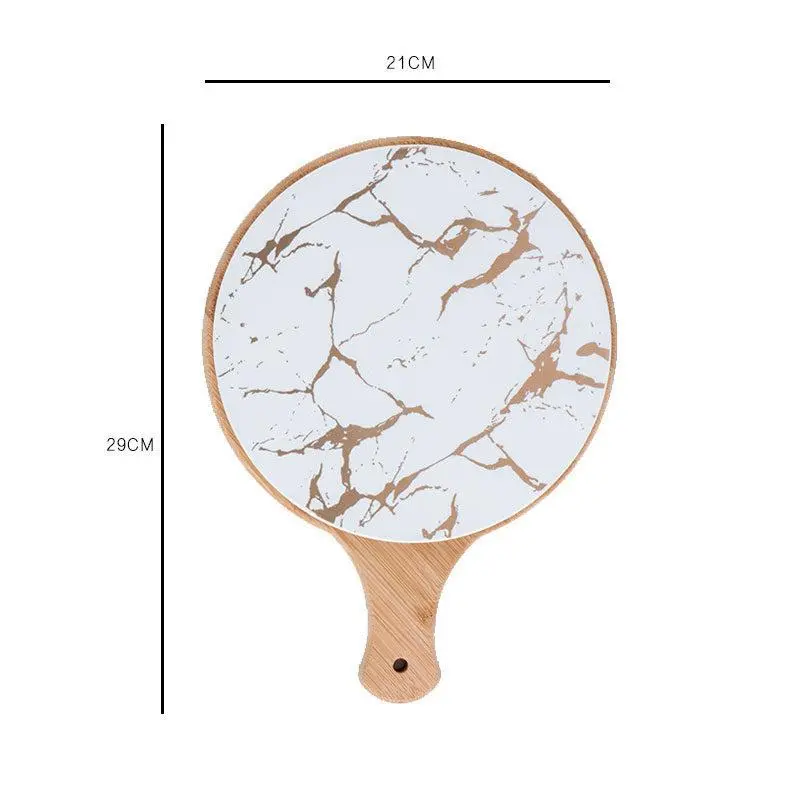 The ceramic surface of the tray is easy to clean and maintain. Simply wipe it down with a damp cloth or mild soap, and it will retain its glossy, pristine finish. The wooden handles are also easy to care for; simply wipe them with a dry cloth to maintain their natural shine.Its stain-resistant ceramic surface ensures that spills and food particles are easy to remove, making the tray an excellent choice for entertaining and everyday use.