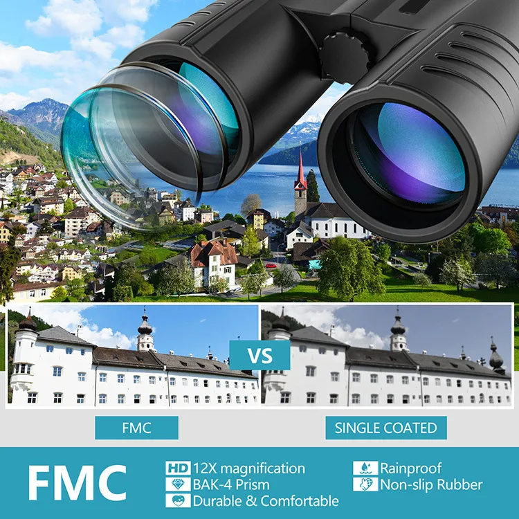 Featuring premium FMC (Fully Multi-Coated) lenses, these binoculars enhance light transmission and reduce glare, offering bright and crisp images in various lighting conditions.