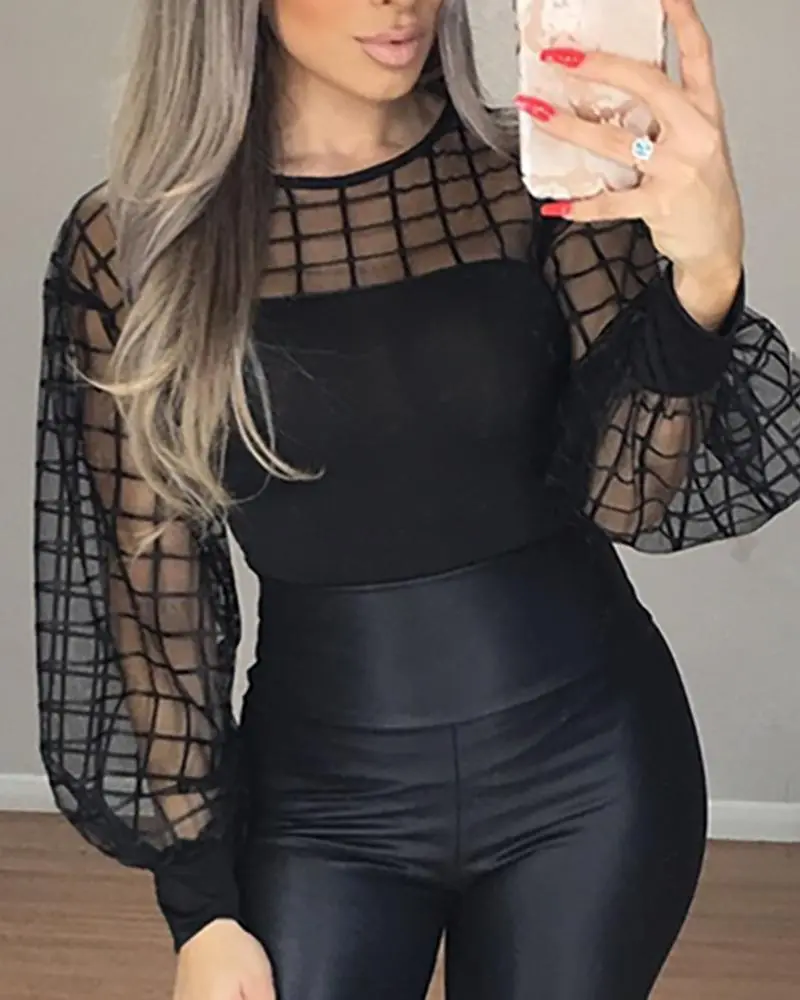 Slimming Fit: The fitted design of the black mesh top enhances your silhouette, offering a flattering look for all body