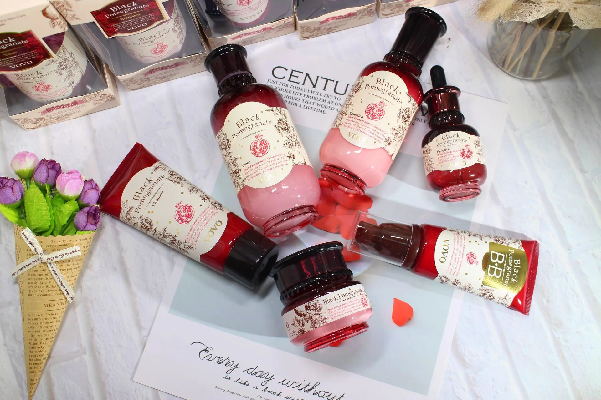 Product specifications: Pomegranate-Water, Pomegranate-Milk, Pomegranate-Cream, Pomegranate-Essence, Pomegranate-Eye cream,