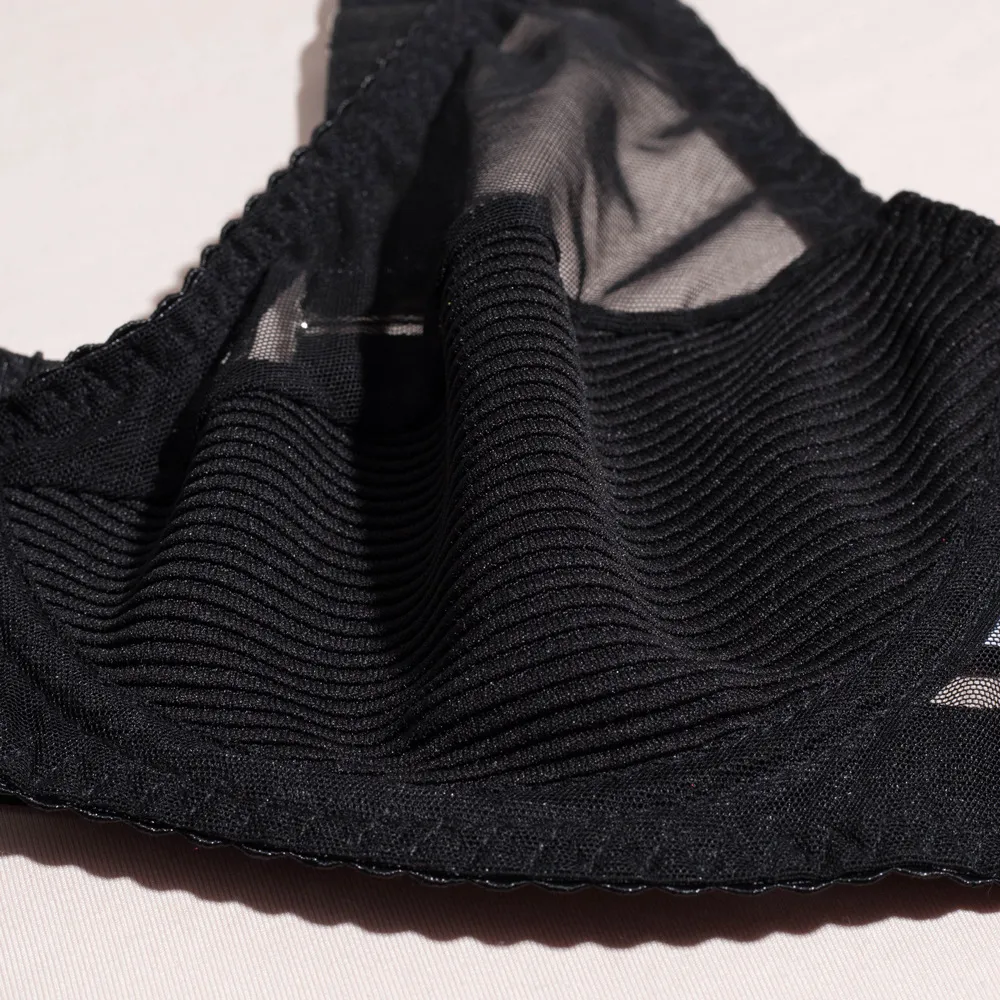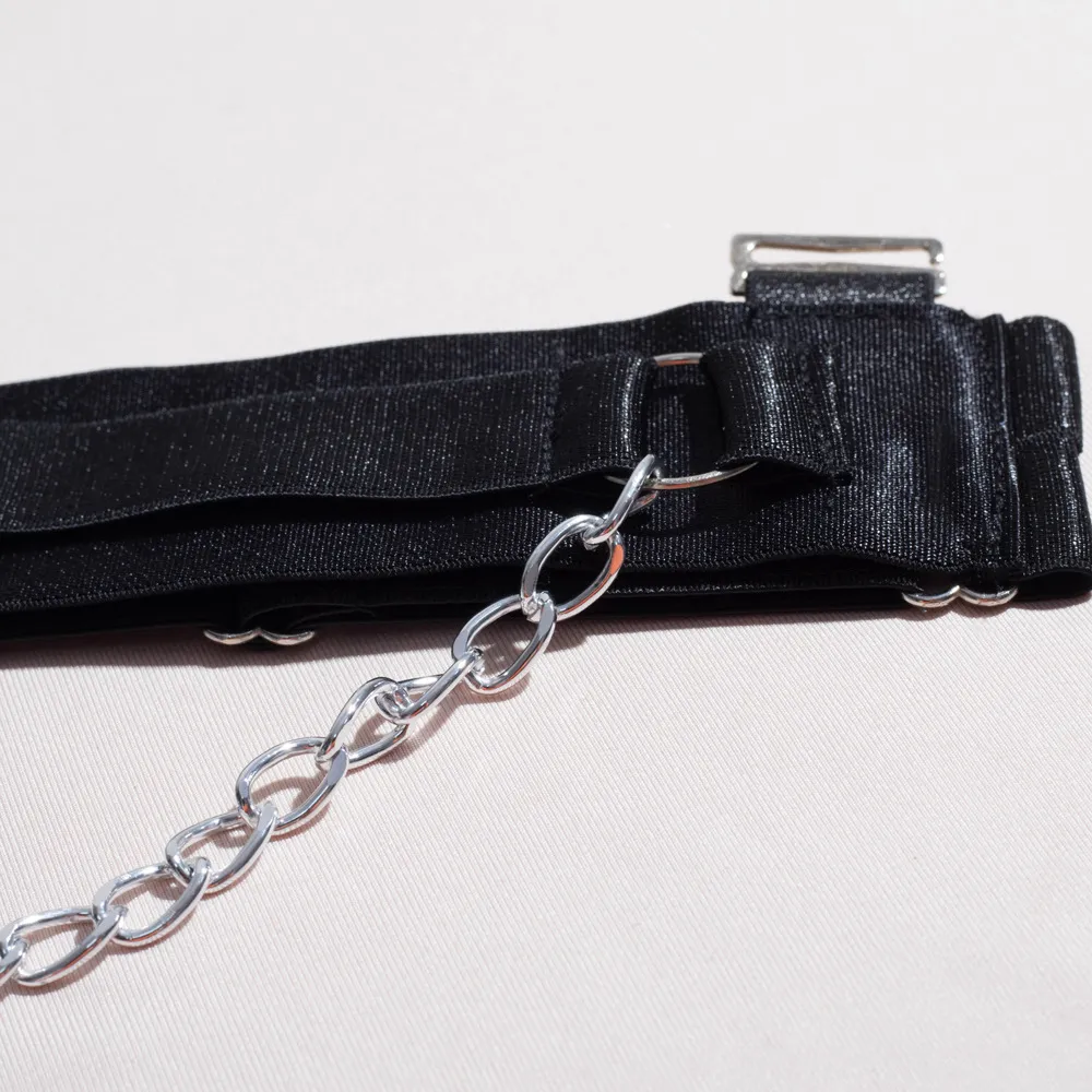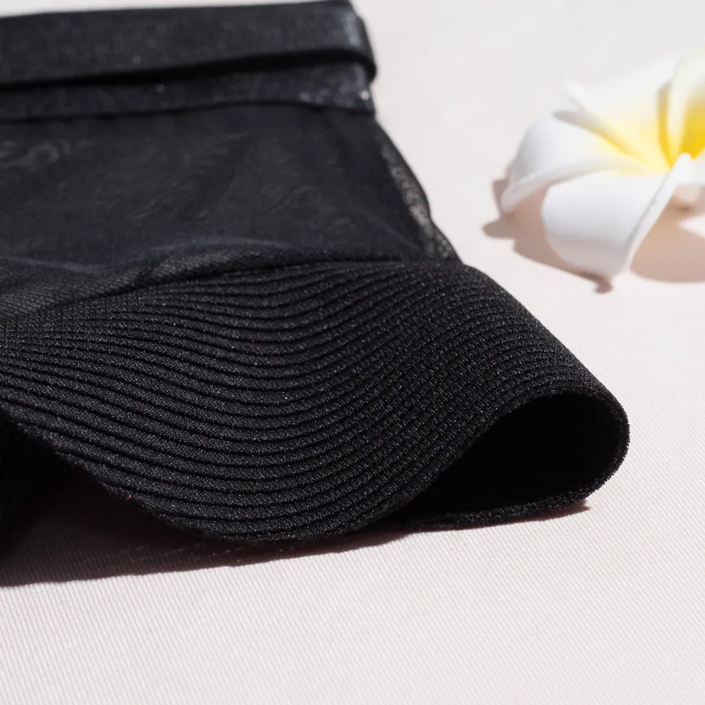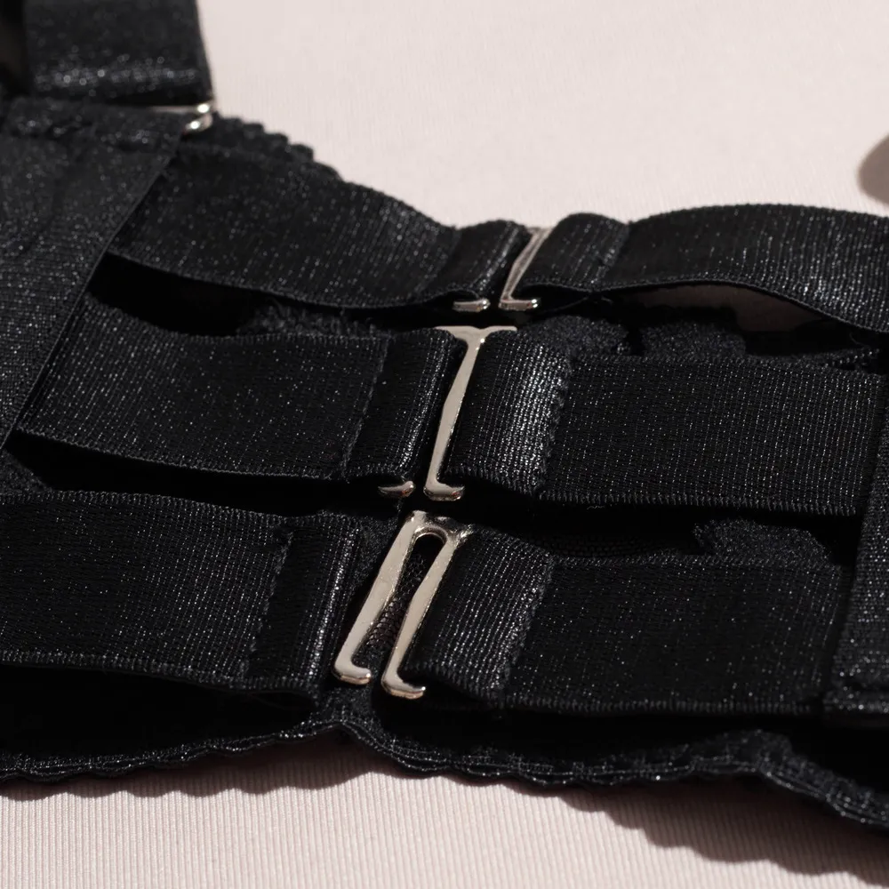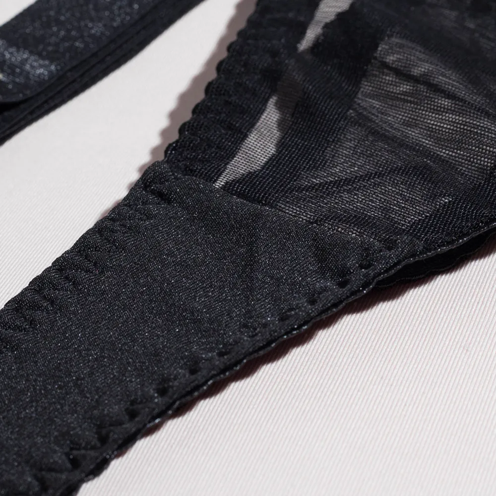 Black Steel Ring Mesh See-through Chain Underwear 4 PCs Set