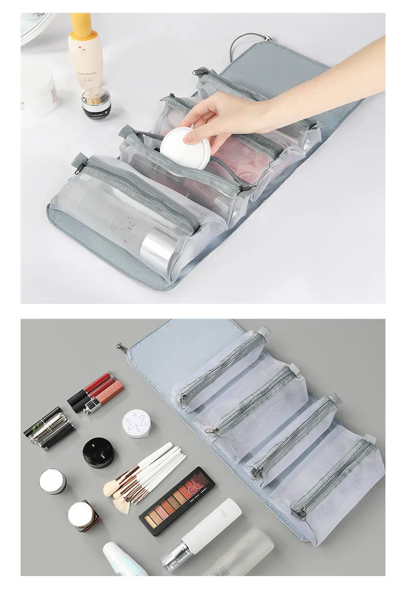 The bag has zipper closure, mesh cutting, and you can directly see through the items in the bag, very convenient.