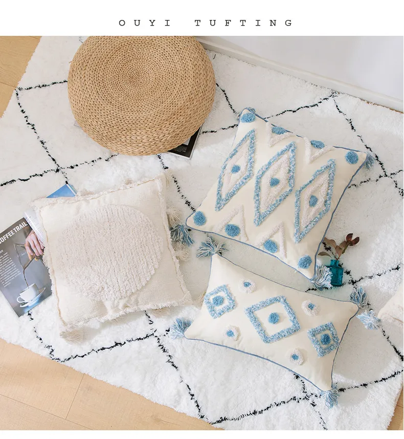 even outdoor spaces. They can be placed on sofas, chairs, beds, or outdoor seating areas to add a pop of color and extra comfort. Blue