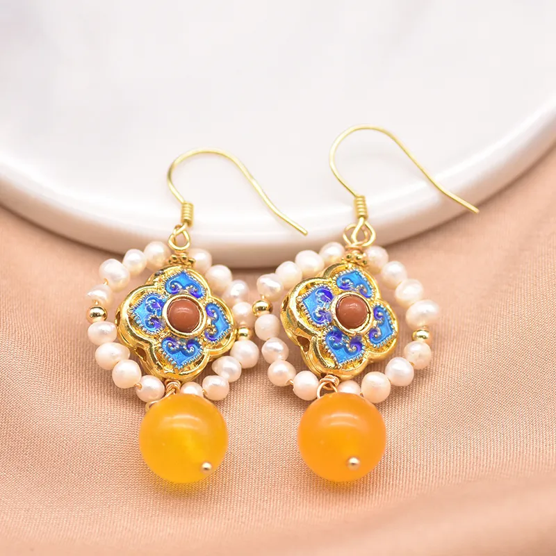 Blue Earrings Natural Freshwater Pearl Jade Earrings Female Jewelry