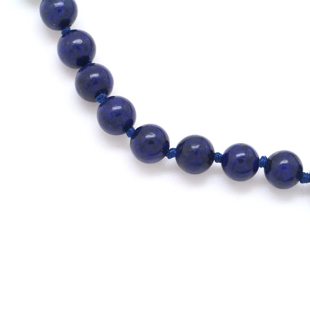 The blue sandstone beads are 8mm in size, making them the perfect choice for this mala necklace. Known for their deep blue color and shimmering golden flecks, blue sandstone is often used for its calming energy. It is said to promote peace, relaxation, and mental clarity, helping the wearer reduce stress and anxiety while maintaining a sense of grounding and balance.