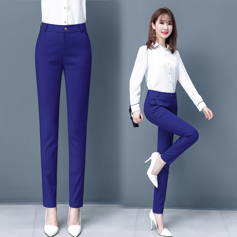 Blue Suit Pants Spring Women's High Waist Career Figure Flattering Drape Skinny Pants