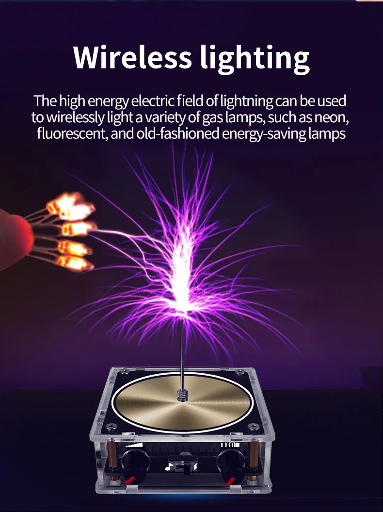 This music tesla has the function of wireless transmission and loudspeaker, can light gaseous tube and kind of bubbles. It is a perfect teaching tool to spark students' interest of science, also a great gift.
