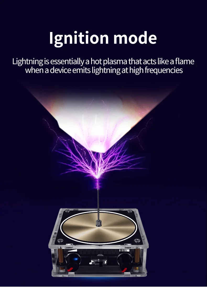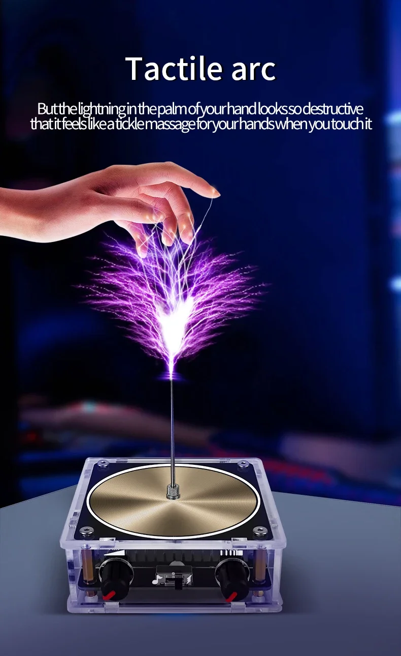 This Bluetooth music Tesla coil features an arc plasma loudspeaker and wireless transmission, producing touchable artificial lightning. It's an engaging educational experiment toy, perfect for demonstrating wireless transmission and the wonders of electricity.