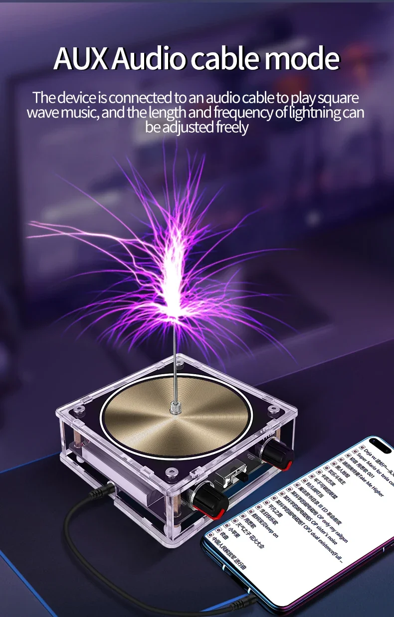 BETTER PERFORMANCE-----This music tesla has circuit protection design, will not damage the input device, can play music in better quality than arc plasma loudspeaker, only square wave music can be played.